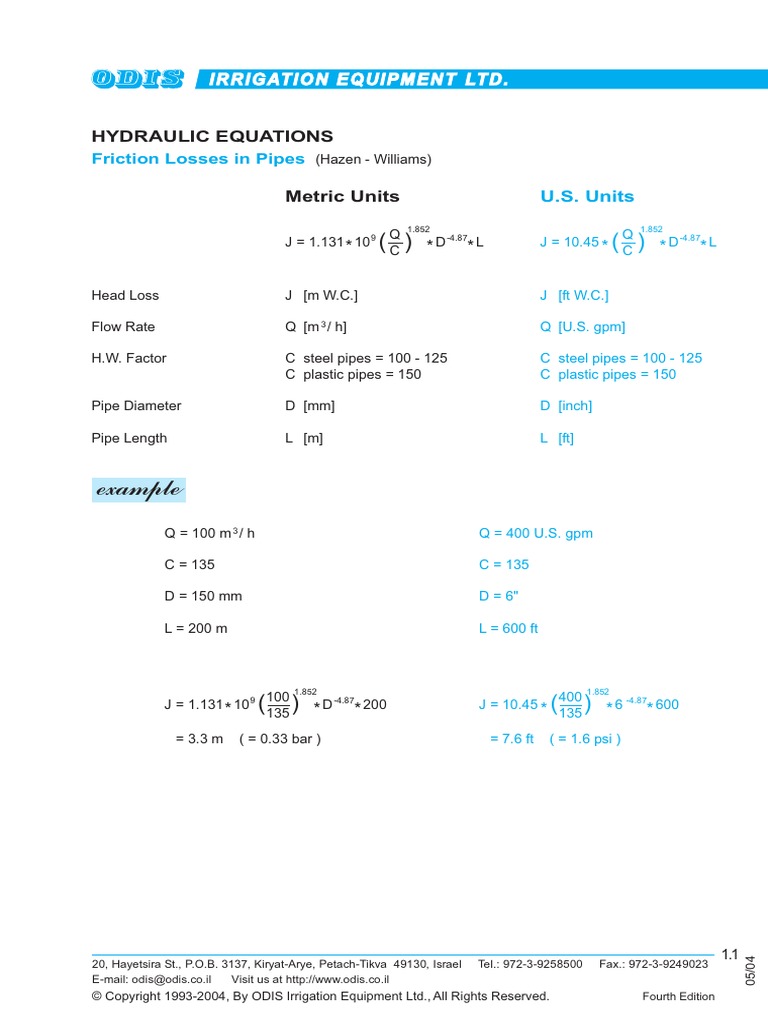 Hydraulic Equations Units Of Measurement Engineering